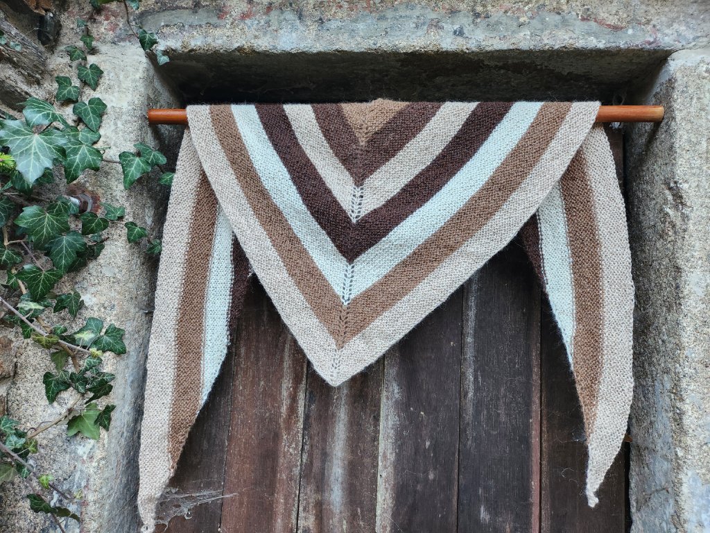 Lehounký velký šátek z naší příze v přírodních barvách pro Vás upletla Alenka.